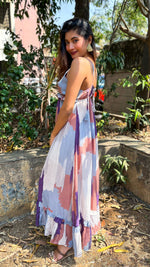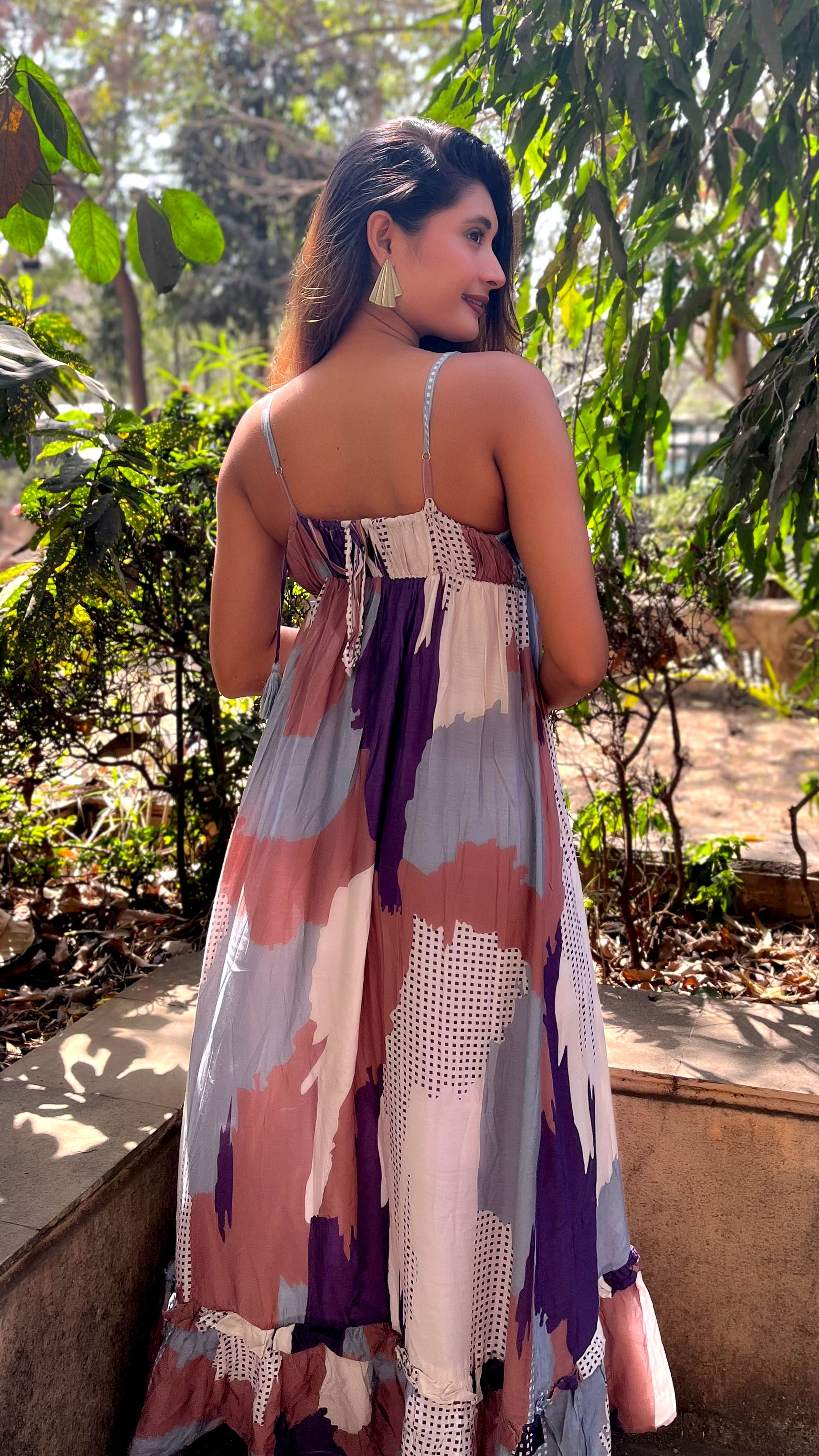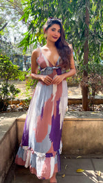 Crafted from delicate muslin fabric, this essential Resort Wear for Women piece showcases a stunning abstract print that is both artistic and captivating. The V-neckline adds a touch of allure, while the ruffled tiered design exudes femininity and grace. This slip dress feature adds a hint of sensuality, making this Summer Dress for Ladies perfect for vacation wear or resort wear. Embrace your creative side and let this dress become your canvas for self-expression.
