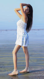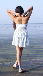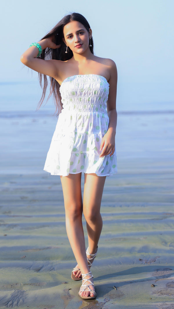 Get ready to turn heads with this polka dot mini tiered dress. Made from luxurious Bemberg fabric, this strapless Summer Dress for Women features a smocked body and flowing tiers. Perfect for a tropical getaway or lounging by the pool, this Beach Dress for Women is a must-have for fashion-forward women. Stay on-trend and stylish with this chic addition to your vacation wardrobe.