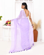 Piyari Fashion Lavender Mulmul Cotton Saree With Tassels