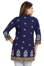 Swell up in this design par excellence named Endearing Ethnicity Short Blue Tunic for Women by store house of latest fashion, Snehal Creation. This ban collared beauty is made of poly. Crepe and comes with interesting prints on it that make an elaborate neck panel, border for the base, sleeve edges and are scattered here and there. This full sleeve kurti is a break from the usual long tunics with its short length and crisp silhouette.
