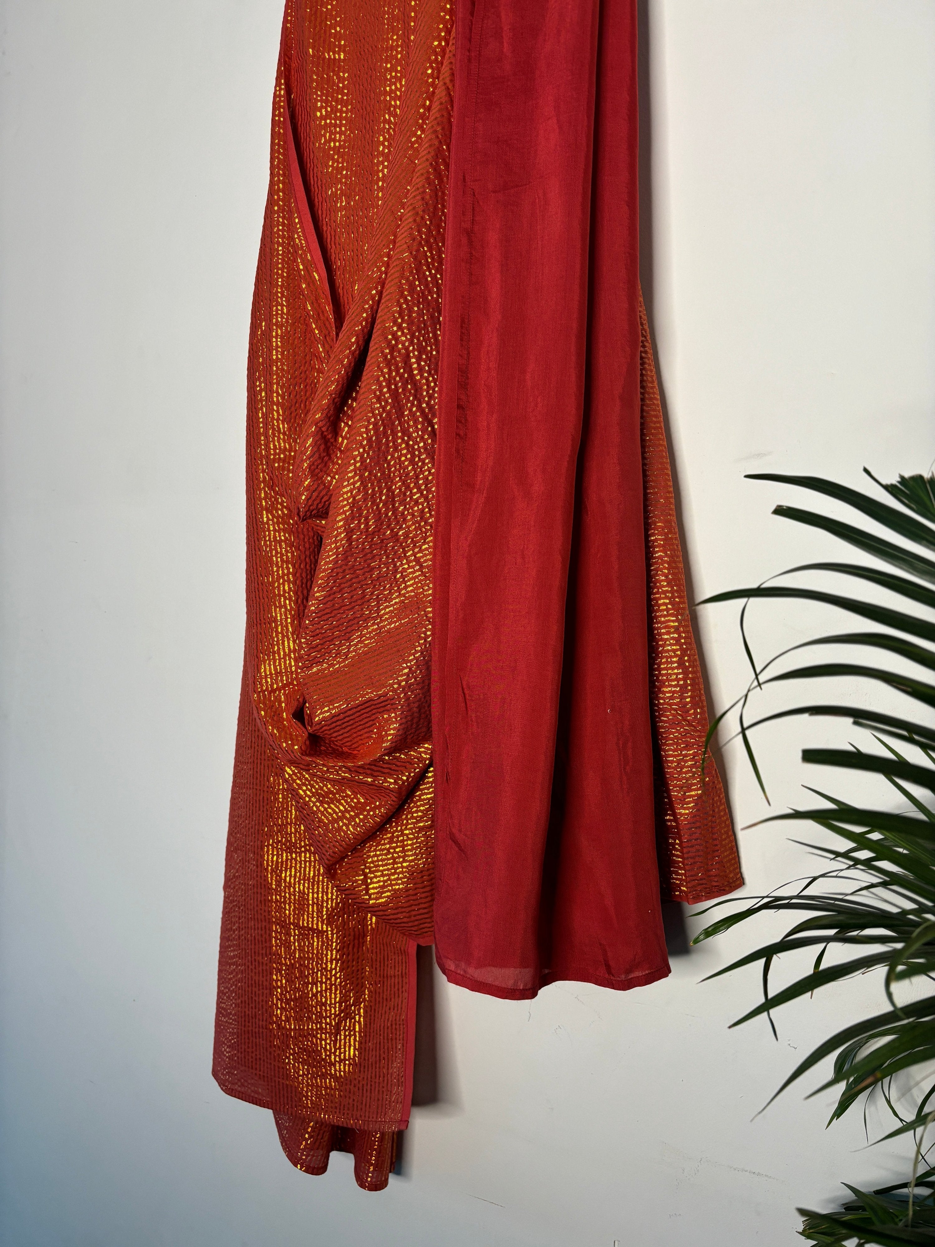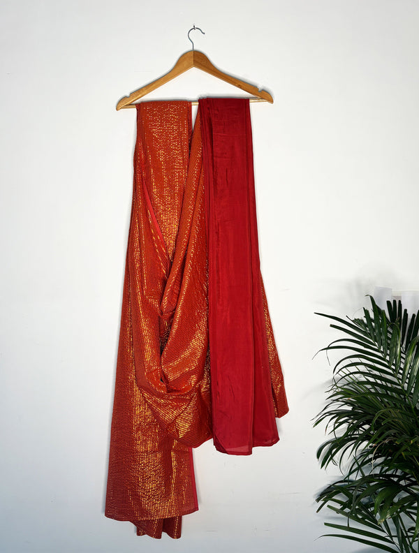 trueBrowns Rust Metallic Saree