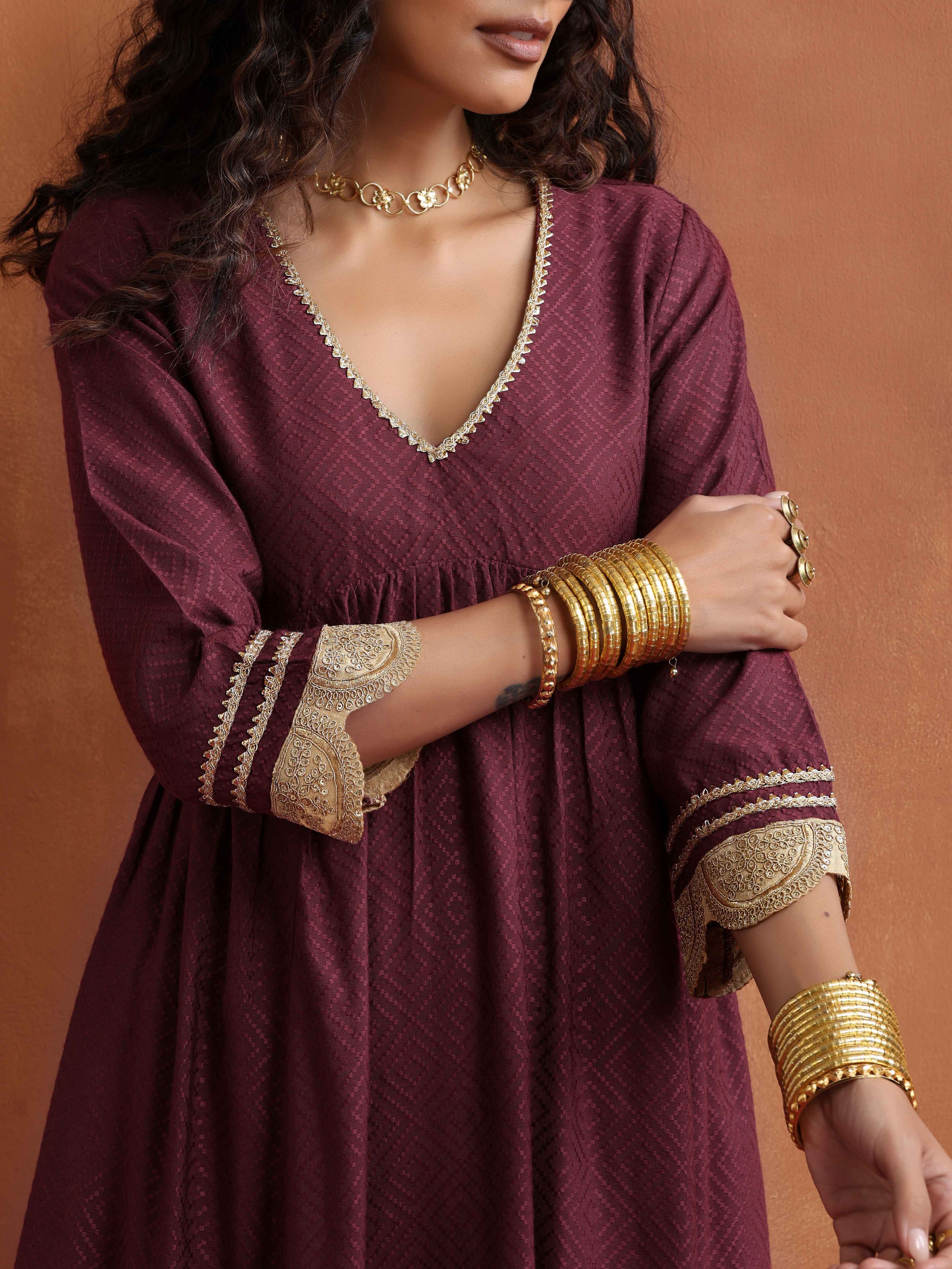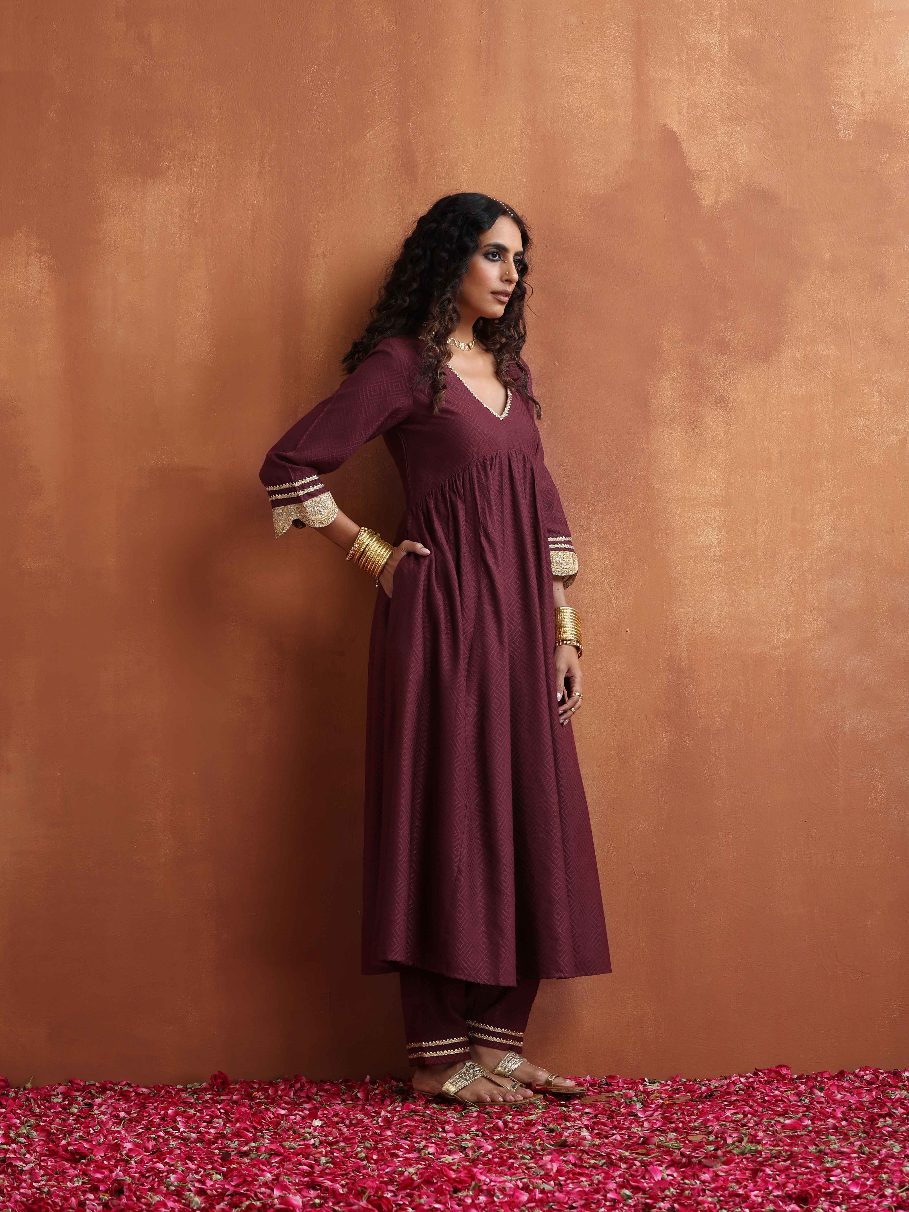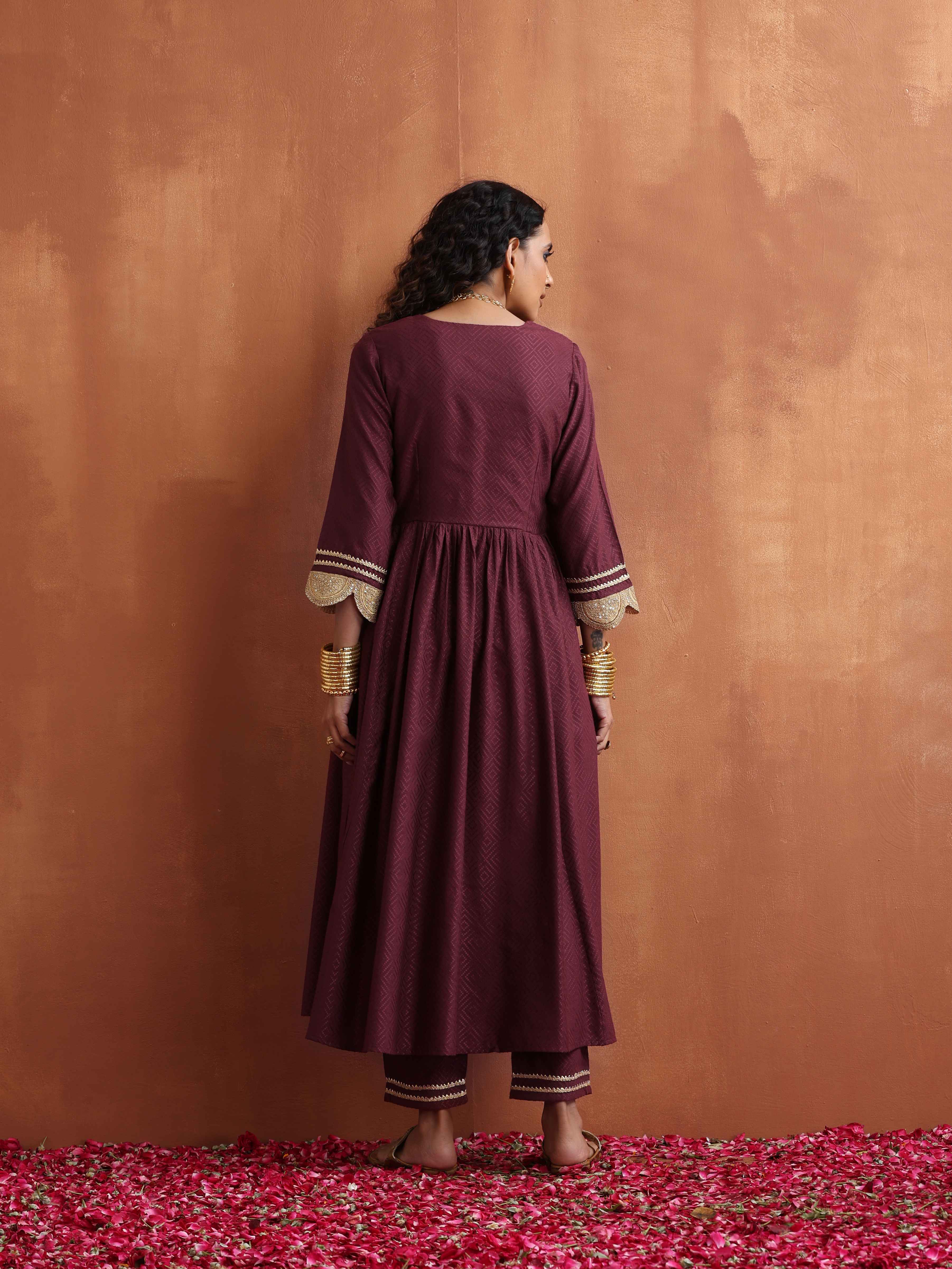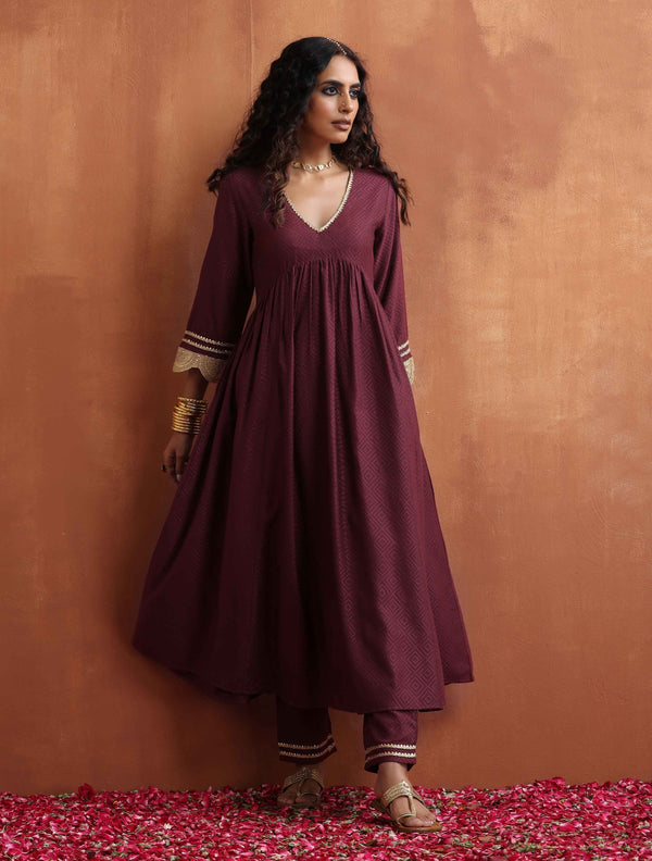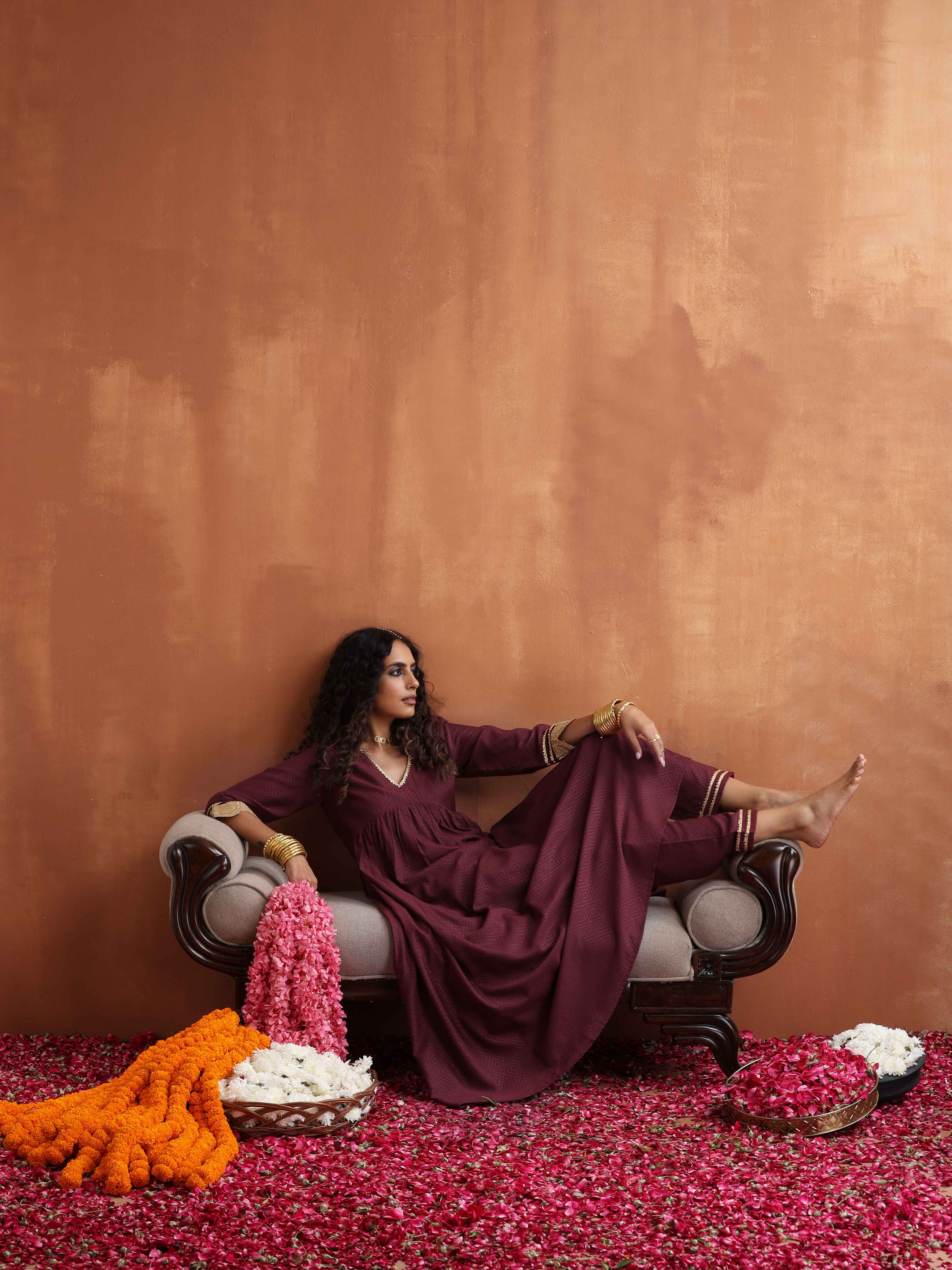 trueBrowns Maroon Flared Anarkali Kurta Set