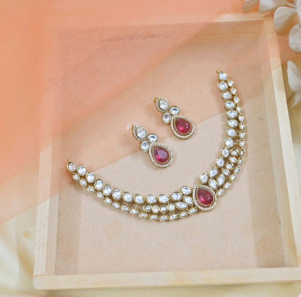 Joban Fashion Copper Pink Moissanite Necklace Set - Defaut Title