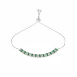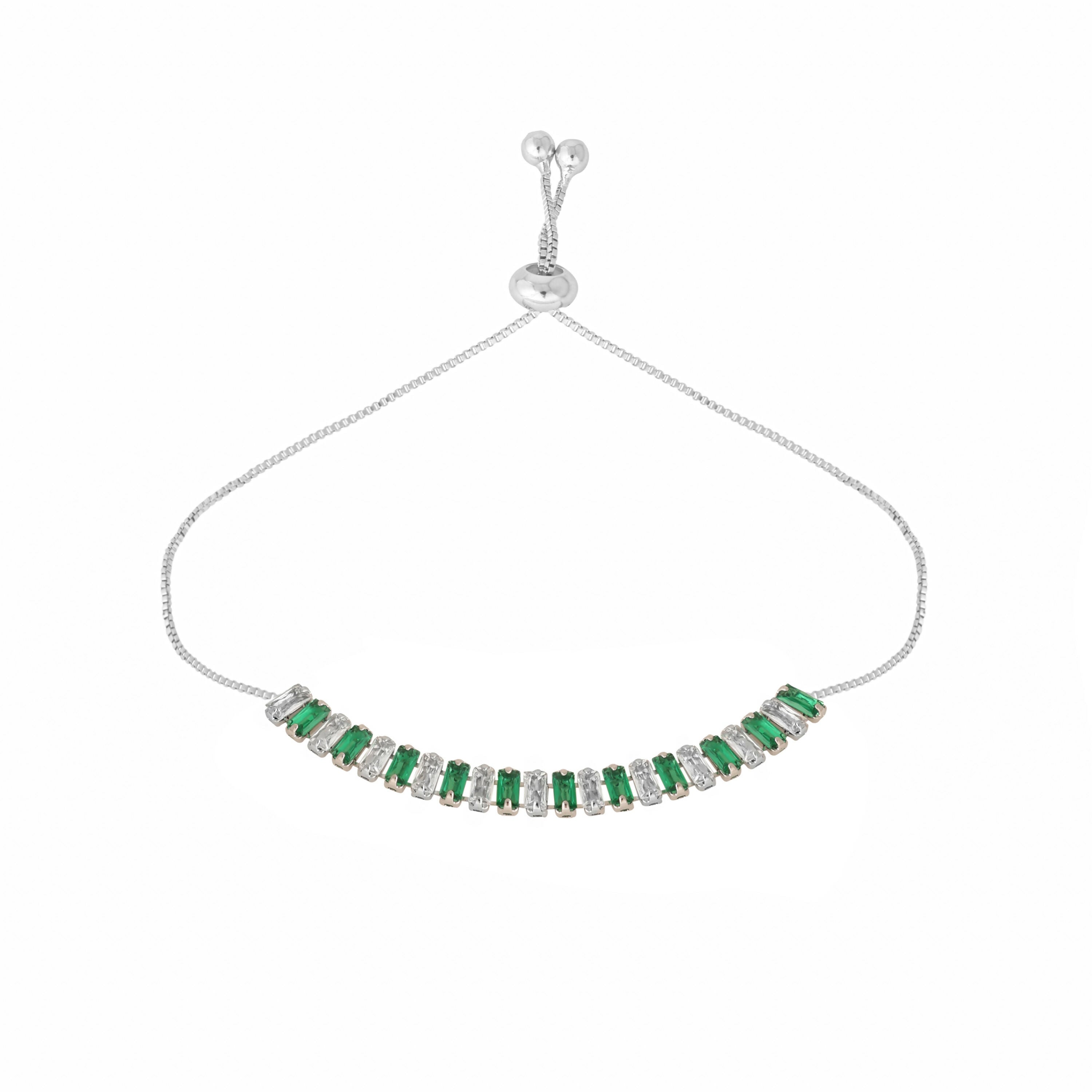 Elegant bracelet featuring sparkling diamonds and vibrant green emeralds, set on adjustable band for perfect fit. Crafted with anti-tarnish and anti-allergic materials.