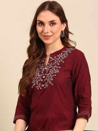 Anouk Notched Neck Thread Work Pure Cotton Straight Kurta