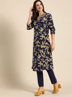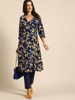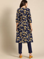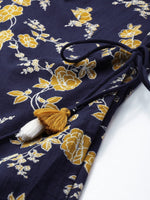 Navy blue and mustard printed Kurta with solid navy-blue Trousers