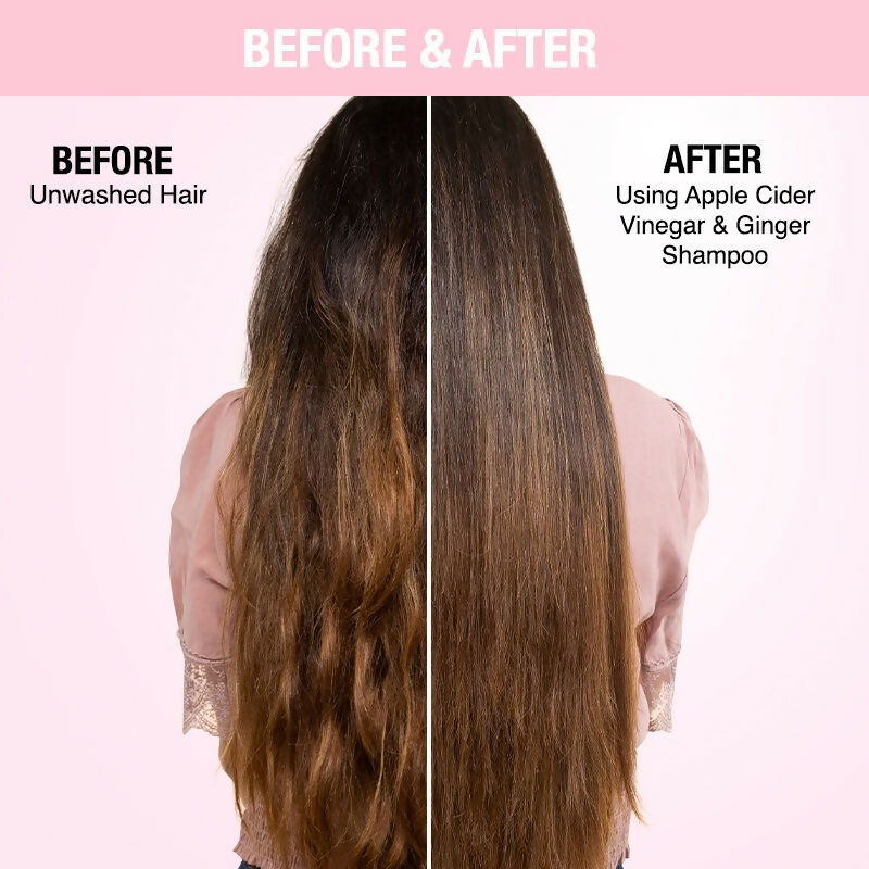• Nykaa's Apple Cider Vinegar & Ginger Shampoo is a gentle cleanser that combats dandruff and clarifies the scalp. It’s a natural pH balancer and is enriched with vitamins and minerals to contribute to a healthy, build-up-free scalp.