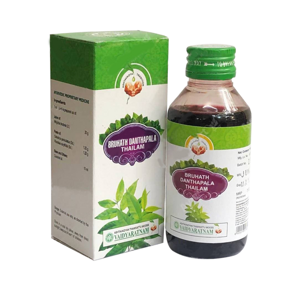 Vaidyaratnam Bruhath Danthapala Thailam is an Ayurvedic product. It is an herbal oil.