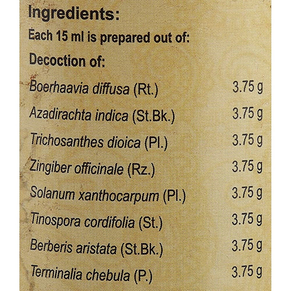 Vaidyaratnam Punarnavadi Kashayam is an all-natural decoction. It is made with the following beneficial herbs.