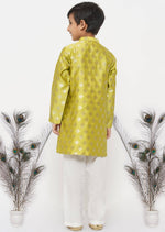 Little Bansi Banarsi Silk Sherwani & Pyjama - Apple Green & Cream