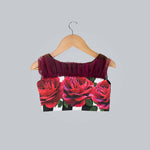 Pink Cow Fashions Printed Ghagra Choli With Frilles Dupatta Flower print choli with purple and maroon net frill above the chest and black and white...