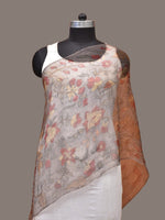 Grey Kalamkari Hand Painted Organza Stole with Floral Design - Global Threads - Distacart