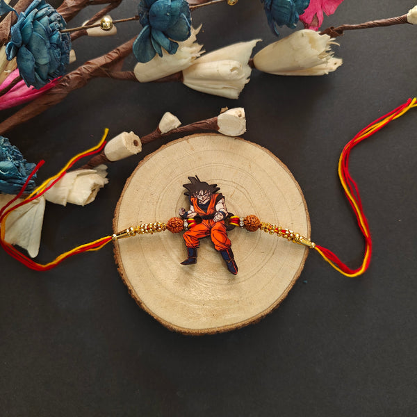 Indianvibez Goku Wooden Rakhi, Anime Rakhi for Brother India - Kids Rakhi