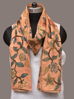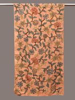 Light Orange Kalamkari Hand Painted Sico Stole with Floral Design. This hand painted kalamkari is done using natural dyes. As they are natural colors they bleed with initial washes, so we suggest Dry clean.