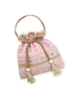 Masq Pink & Gold-Toned Embellished Potli Clutch - Distacart