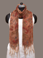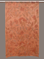 Orange Kalamkari Hand Painted Organza Stole with Floral Design - Global Threads - Distacart