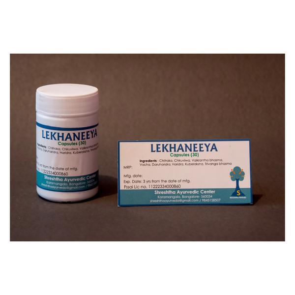 Shreshtha Herbals Lekhaneeya CapsulesIngredients:Chitraka, Chiruvilwa, Vaikrantha bhasma, Vacha, Daruharidra, Kuberaksha, Trivanga bhasmaDirections...