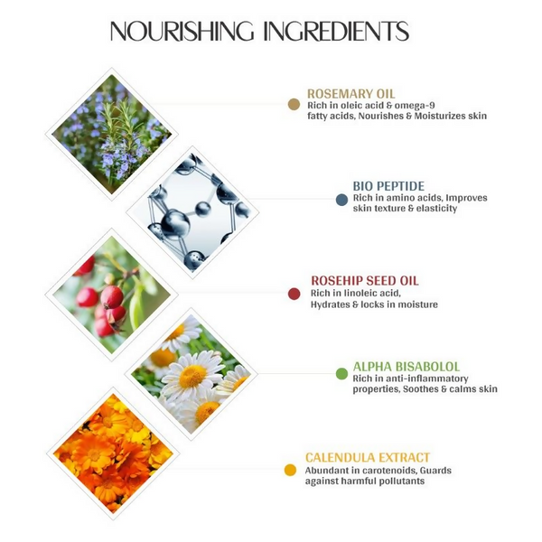 • Rosemary Oil, Calendula Extract, Rosehip Seed Oil, Seed Butter