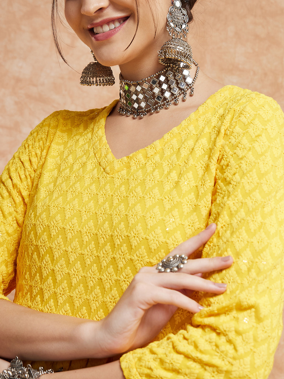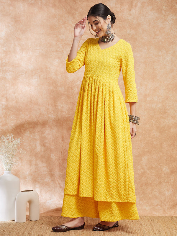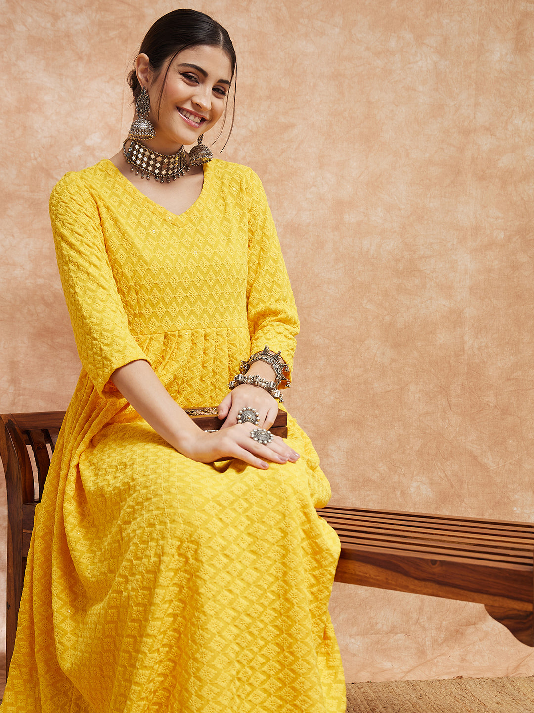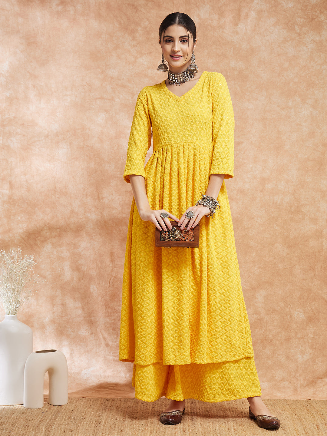 The Set is crafted from best of Indian fabrics. Style it with Oxidised jewelery and juttis and you are good to go for any outing Hand Wash Only Separately.