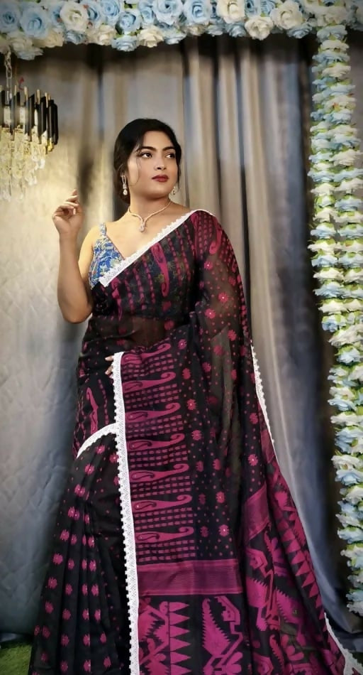 Exclusive Collection Beautiful Black Jaal Jamdani Saree