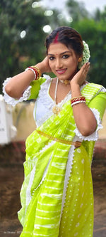 Exclusive Collection Beautiful Parrot Green Jaal Jamdani Saree