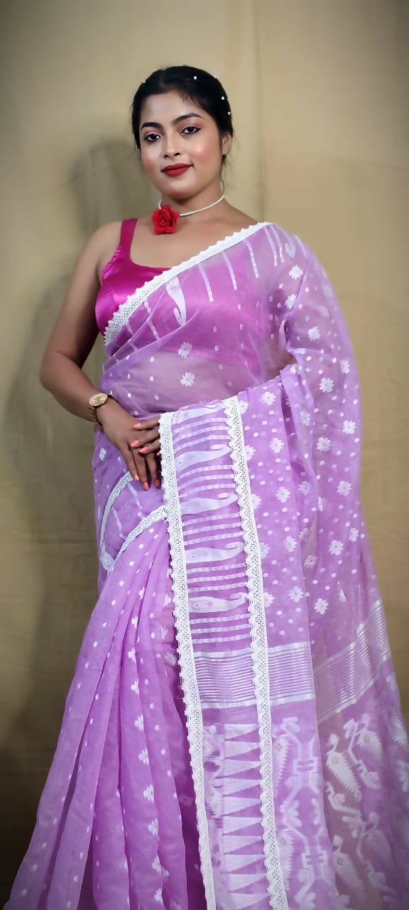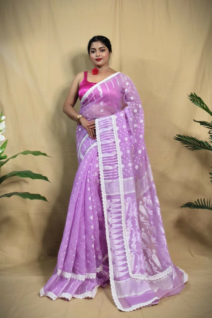 Exclusive Collection Beautiful Purple Jaal Jamdani Saree