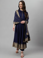 Blue printed Kurta with Palazzos with dupatta