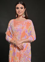 Vegaa Fashion Orange Soft Georgette Sequence Work Saree