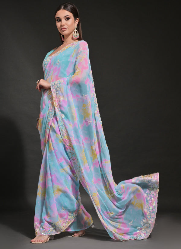 Vegaa Fashion Sky Blue Soft Georgette Sequence Work Saree