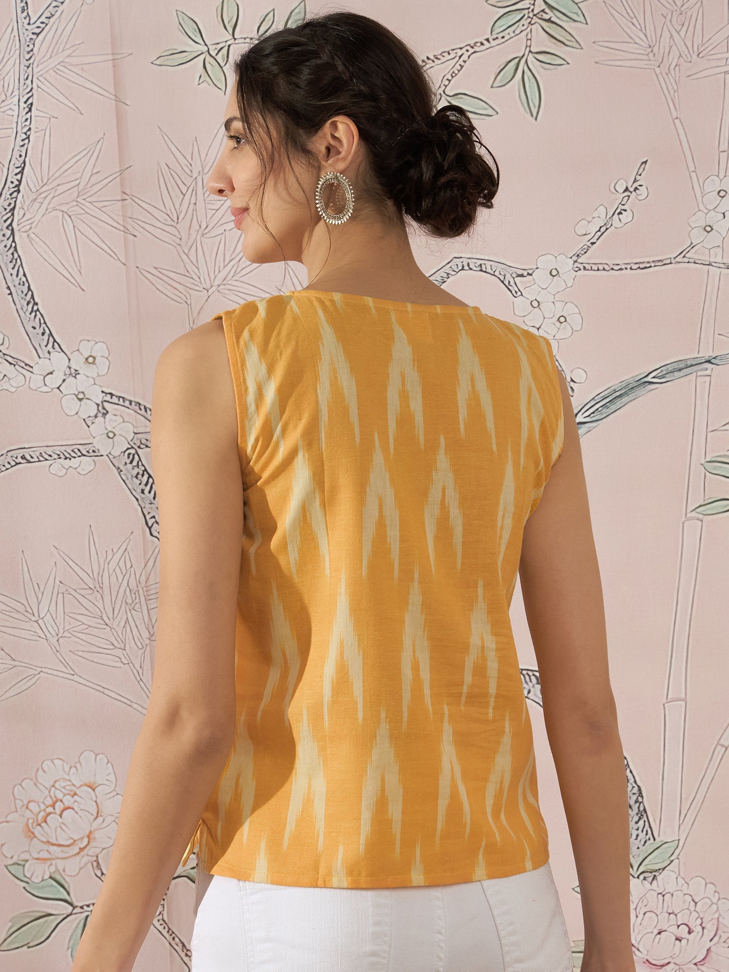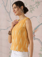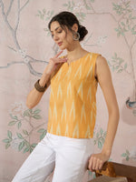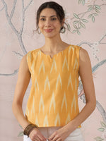 The Yellow Ikkat W/S Top is a vibrant and stylish piece that beautifully blends traditional weaving with modern comfort. Designed in a cheerful yellow hue, this top features an intricate Ikkat print, adding a touch of heritage charm.