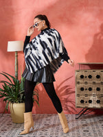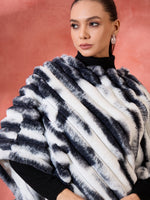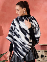 InWeave Black White Dye Rabbit Faux Fur Poncho - Free Size