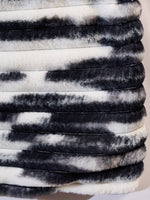 A stylish poncho crafted from soft rabbit fur, featuring a striking black and white dye pattern. This luxurious piece offers warmth and a bold, contemporary look, perfect for adding a touch of elegance and sophistication to any outfit.
