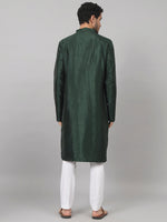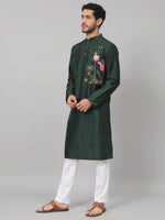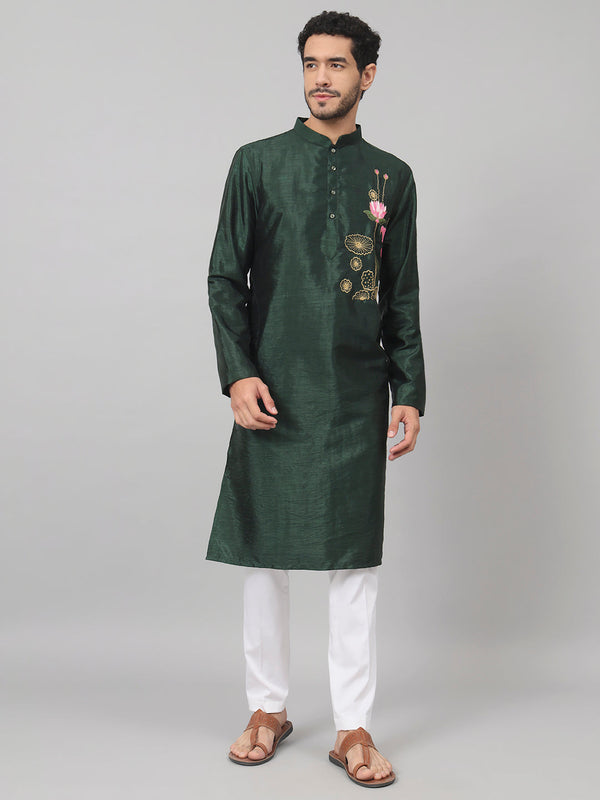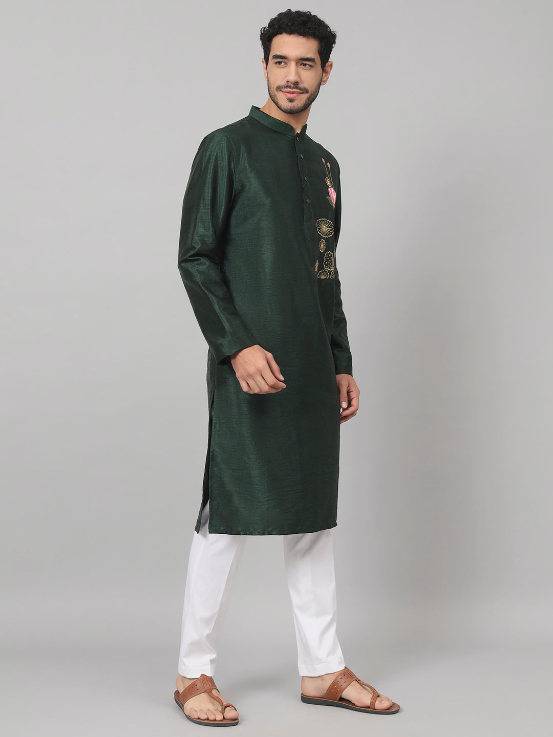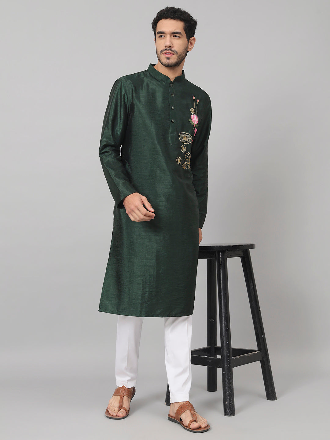 Dark Fern Embroidered Silk Kurta by Hilo Design