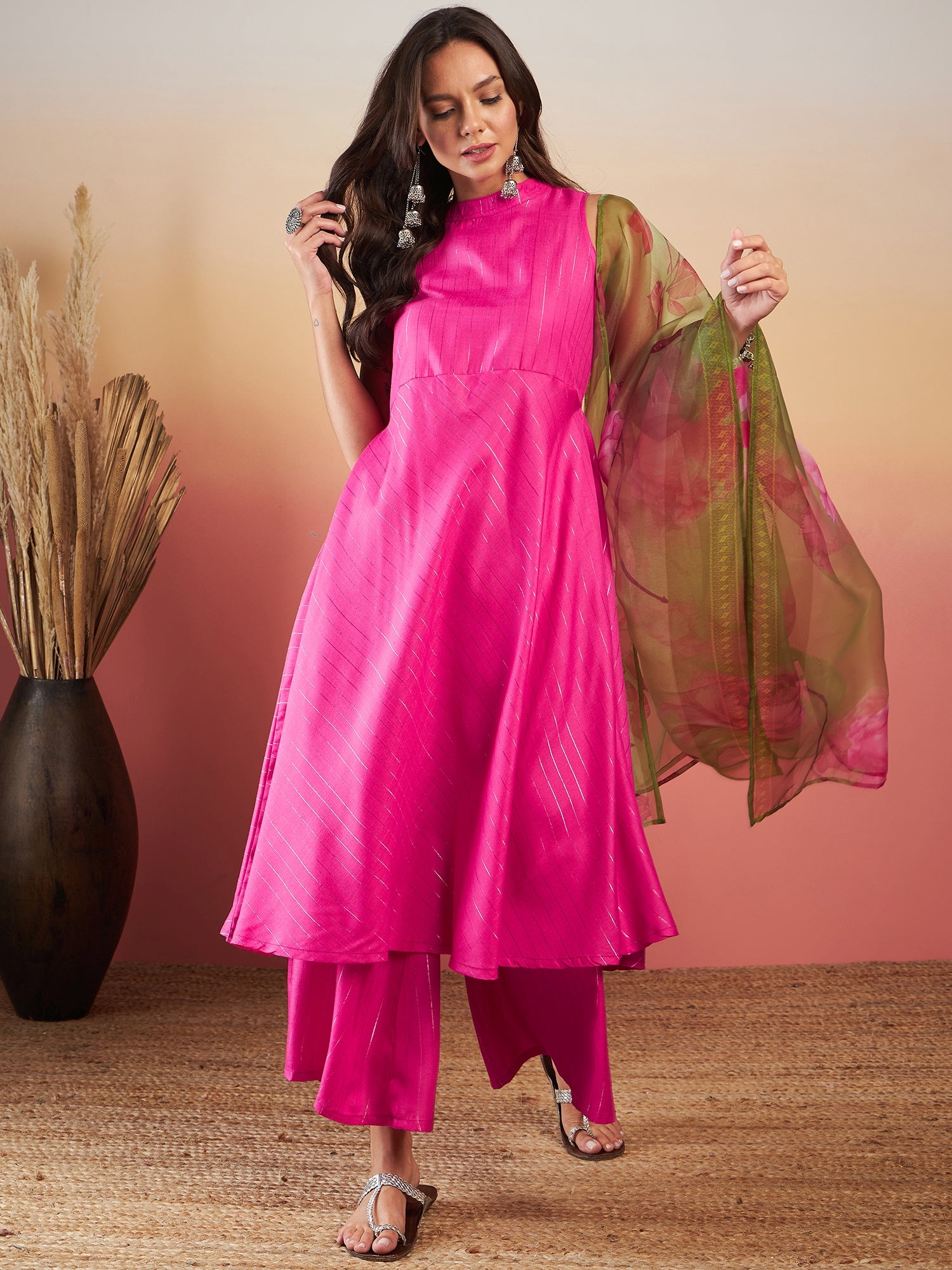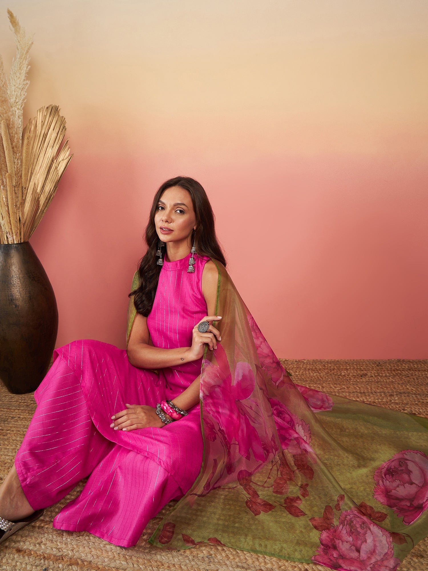 InWeave Fuchsia Olive Lurex SetThe Set is crafted from best of Indian fabrics. Style it with Oxidised jewelery and juttis and you are good to go fo...