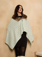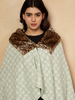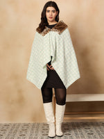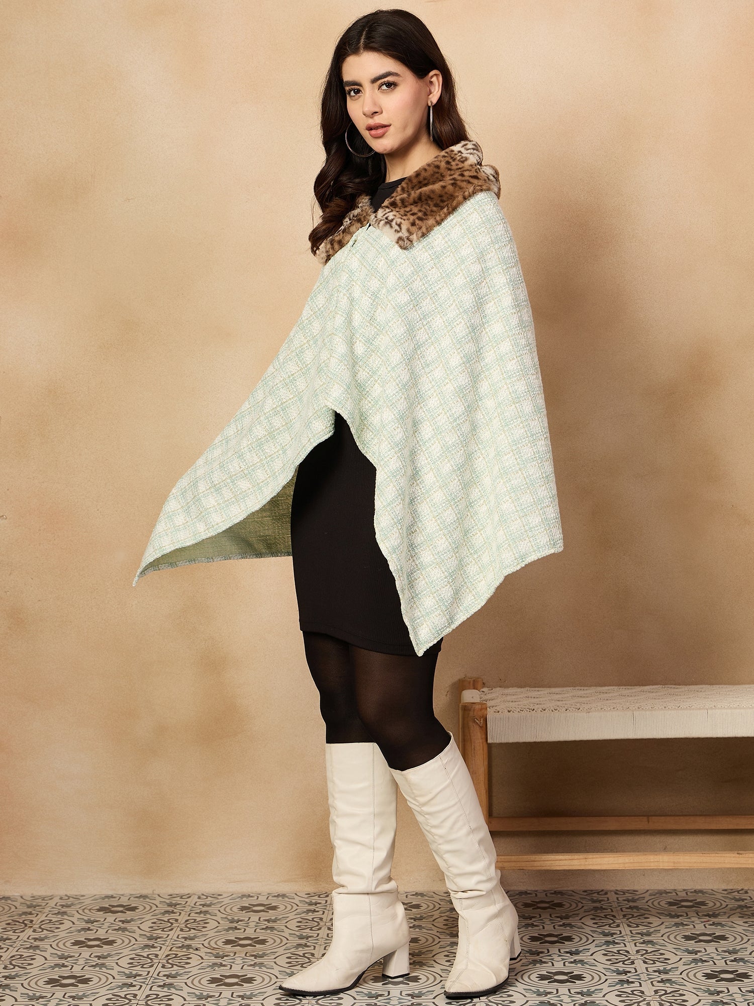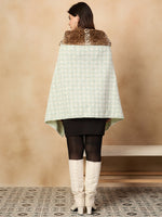 InWeave Green White Big Check Acrylic Fur Poncho - Free Size
