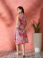 A vibrant pink dress adorned with a striking windowpane print, featuring a classic round neckline. This piece combines a fresh, modern design with versatile wearability, making it perfect for casual outings or semi-formal occasions.
