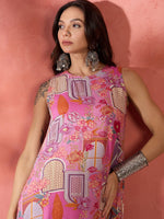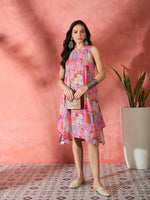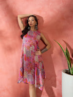 InWeave Pink Window Print R Neck DressA vibrant pink dress adorned with a striking windowpane print, featuring a classic round neckline. This piece...