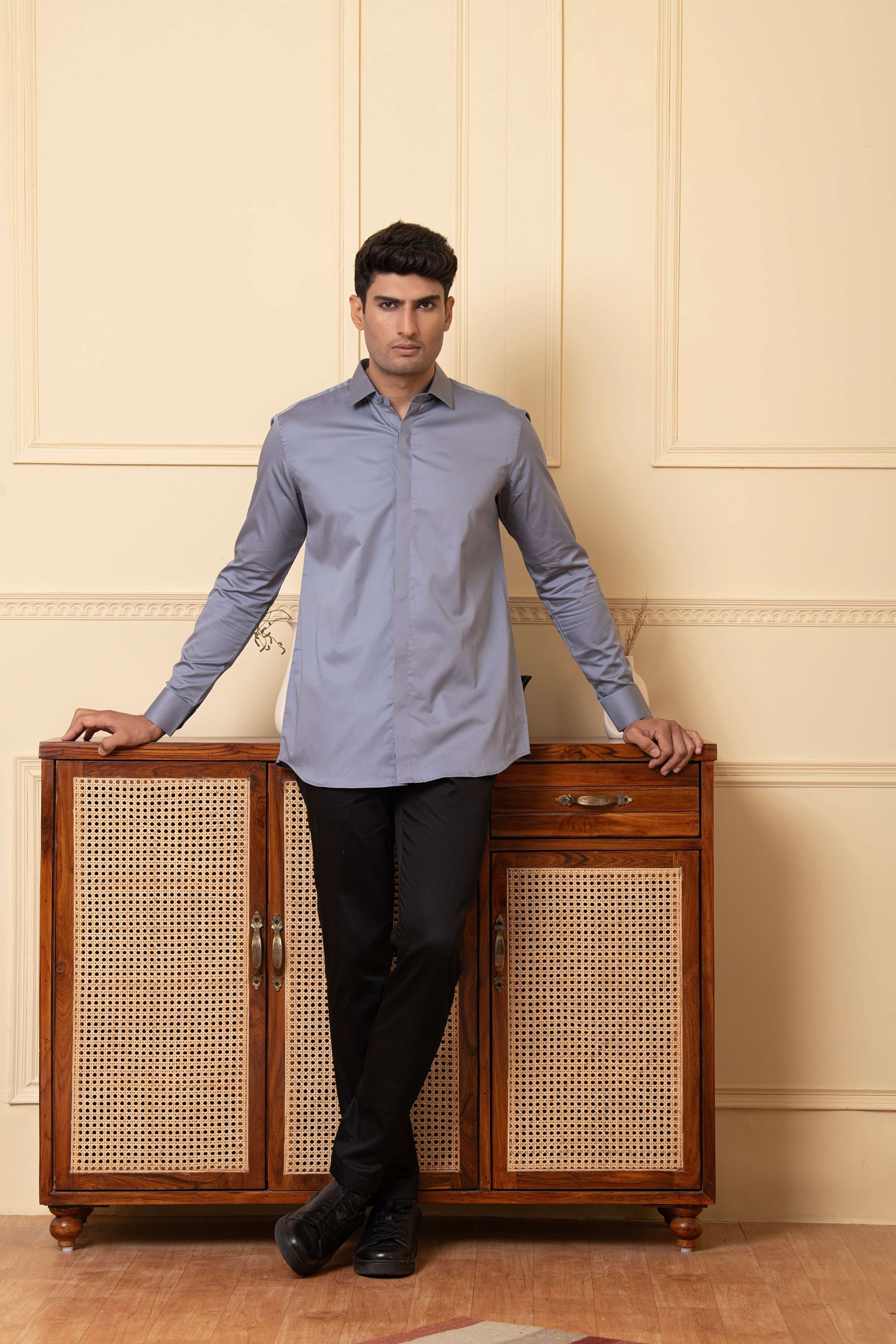 This meticulously crafted shirt featuring concealed buttons that add a touch of sleekness to your look. The minimalist design ensures versatility, allowing you to effortlessly transition from formal meetings to casual outings. Made with high-quality fabric, the slate shirt promises all-day comfort and durability.