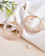 VOJ Women Gold-Polished Studded Beads Stainless Steel Double Circular Hoop Earrings
