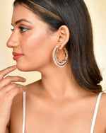 Introducing the VOJ Women Gold-Plated Studded Beads Double Circular Hoop Earrings. Crafted with elegance and sophistication, these stainless steel hoop earrings feature a stunning double circular design adorned with exquisite gold-plated studded beads. Perfect for adding a touch of glamour to any outfit, these earrings are a must-have accessory for the modern woman.