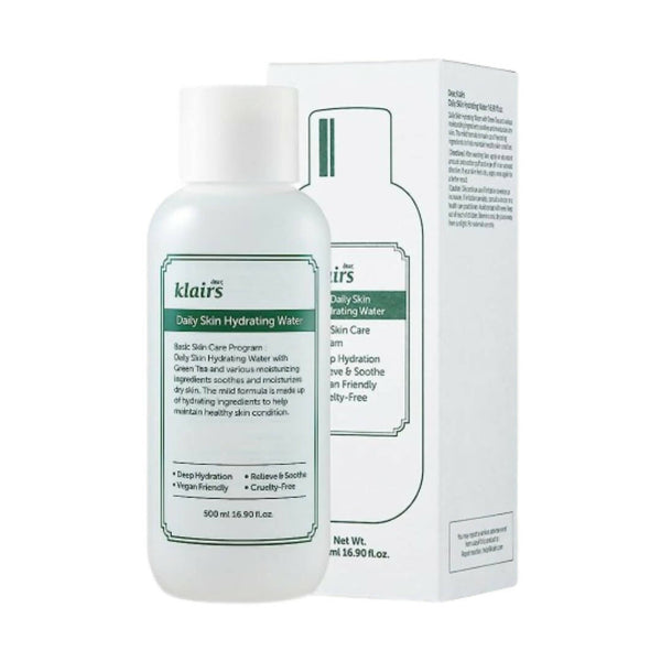 Klairs Daily Skin Hydrating Water is a water-like daily use hydrating toner with no viscosity that quickly absorbs into the skin. It contains 45% green tea water which is full of antioxidants that calm and soothe the skin. Green tea is also great for acne, it delivers hydration and helps fortify the skin's natural moisture barrier.