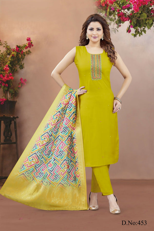 Joban Fashion Women Soft Silk Green Round Neck Emroidery Kurta Set - 36