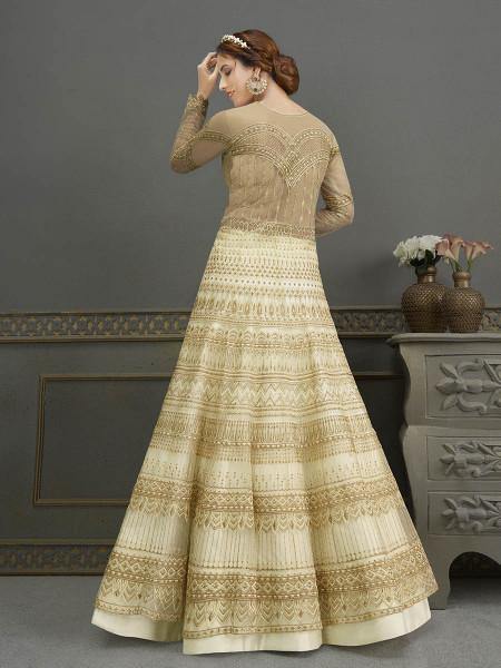 Myra Pista Soft Net Embroidered Handwork Gown Style Suit