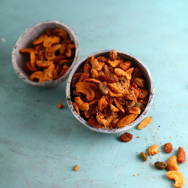 Almonds, Cashews, Pistachios, Raisins, Poppy Seeds, Refined Groundnut Oil, Salt, Red Chilli Powder, Black Salt Powder, Whole Spices
