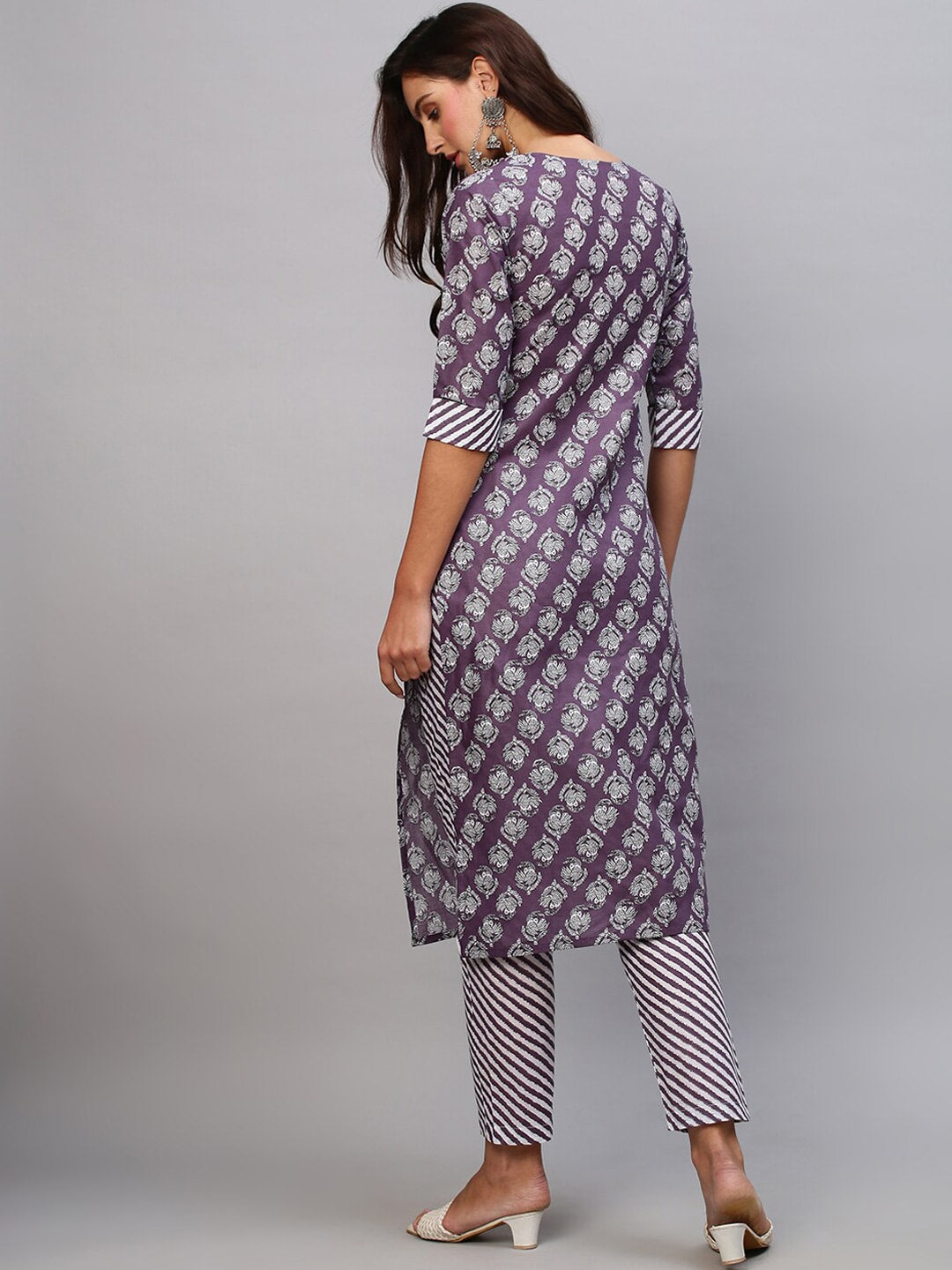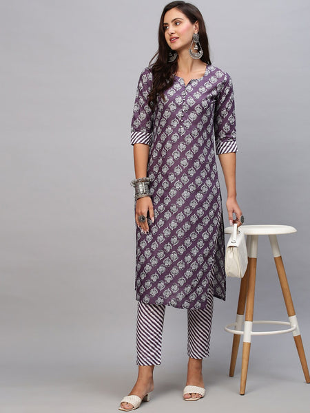 Kalini Ethnic Motifs Printed Straight Kurta with Trousers - Distacart