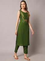 Kalini Floral Embroidered Mirror Work Kurta with Trousers & Dupatta Product Details Green and red embroidered Kurta with Trousers & dupa...