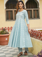 Kalini Floral Printed Gotta Patti Pure Cotton Kurta with Trousers & With Dupatta Product Details Blue printed Kurta with Trousers with dupat...