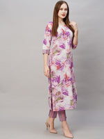Purple & white printed Kurta with Trousers