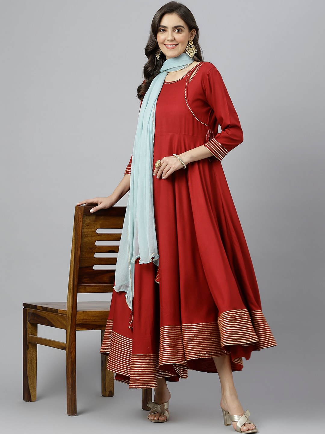 Kalini Women Maroon Solid Anarkali Kurta With Dupatta - Distacart
