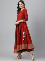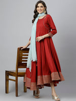 Kalini Women Maroon Solid Anarkali Kurta With Dupatta